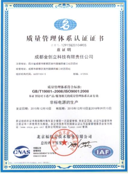 成都金創立科技有限責任公司成立于2007年,地址在成都新都區斑竹園。公司主要以等離子技術研發、應用、推廣為發展方向,開發、生產了先進的逆變電源、脈沖電源、真空鍍膜電源、大功率開關電源、專用脈沖電源、高壓電源和專用自動控制系統等設備。由于公司擁有多項發明專利和實用新型專利,以及公司在國內等離子電源技術方面的領先地位,成都金創立科技有限責任公司是中國電源學會理事單位。
